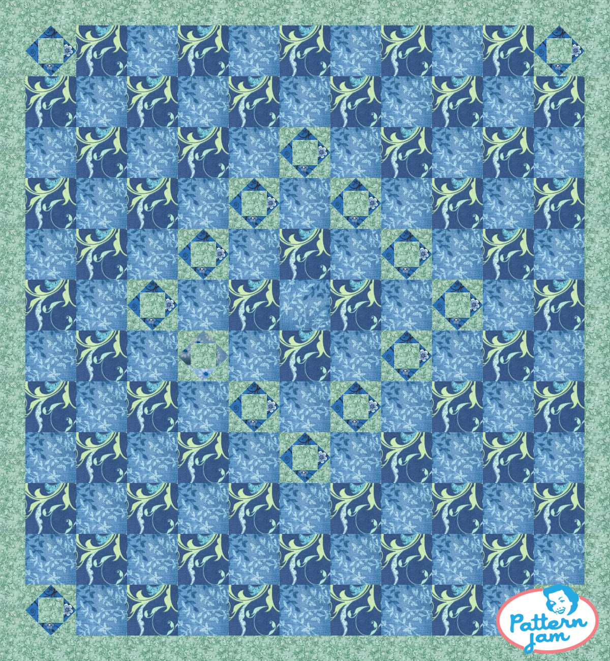 Blues & Greens - custom quilt designed by @barnardlisa using PatternJam quilt design software