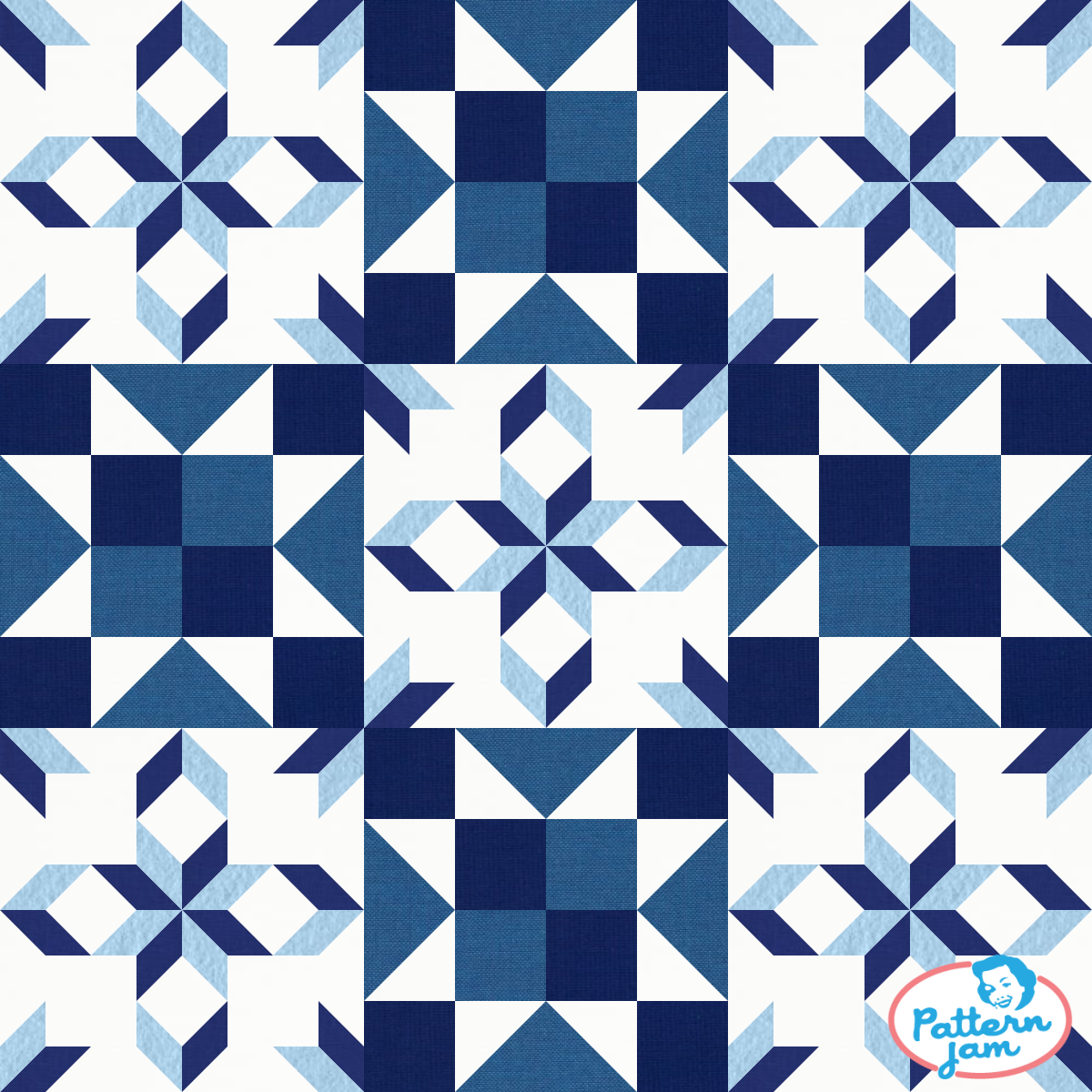 Blue Flying Geese - custom quilt designed by @heikamountain using PatternJam quilt design software