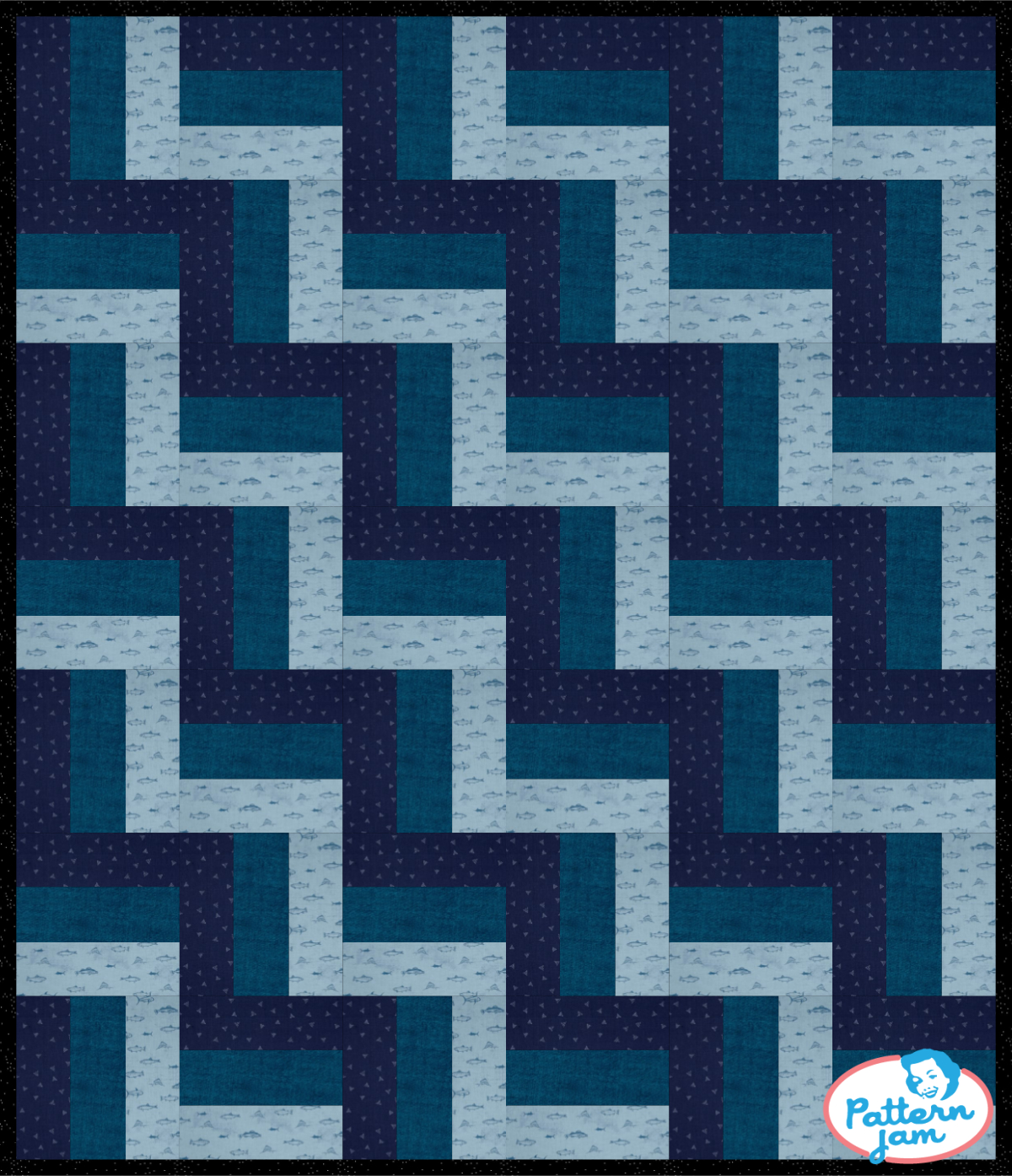 Blue Jean Fence - custom quilt designed by @beckygullion using PatternJam quilt design software