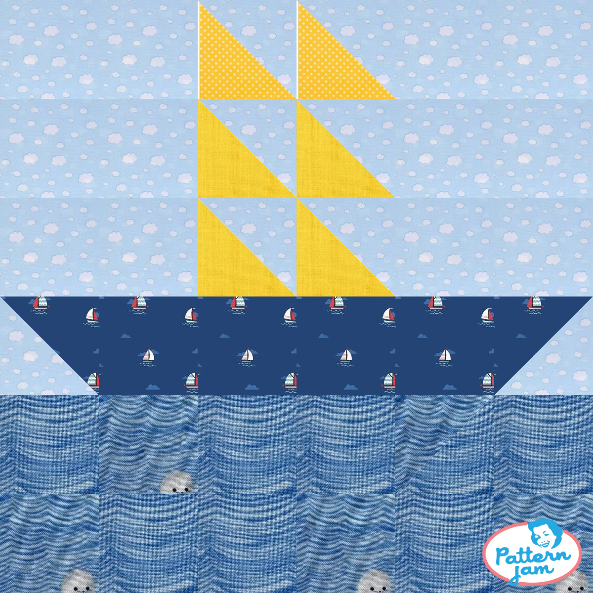 Blue sail boat - custom quilt designed by @saberry using PatternJam quilt design software