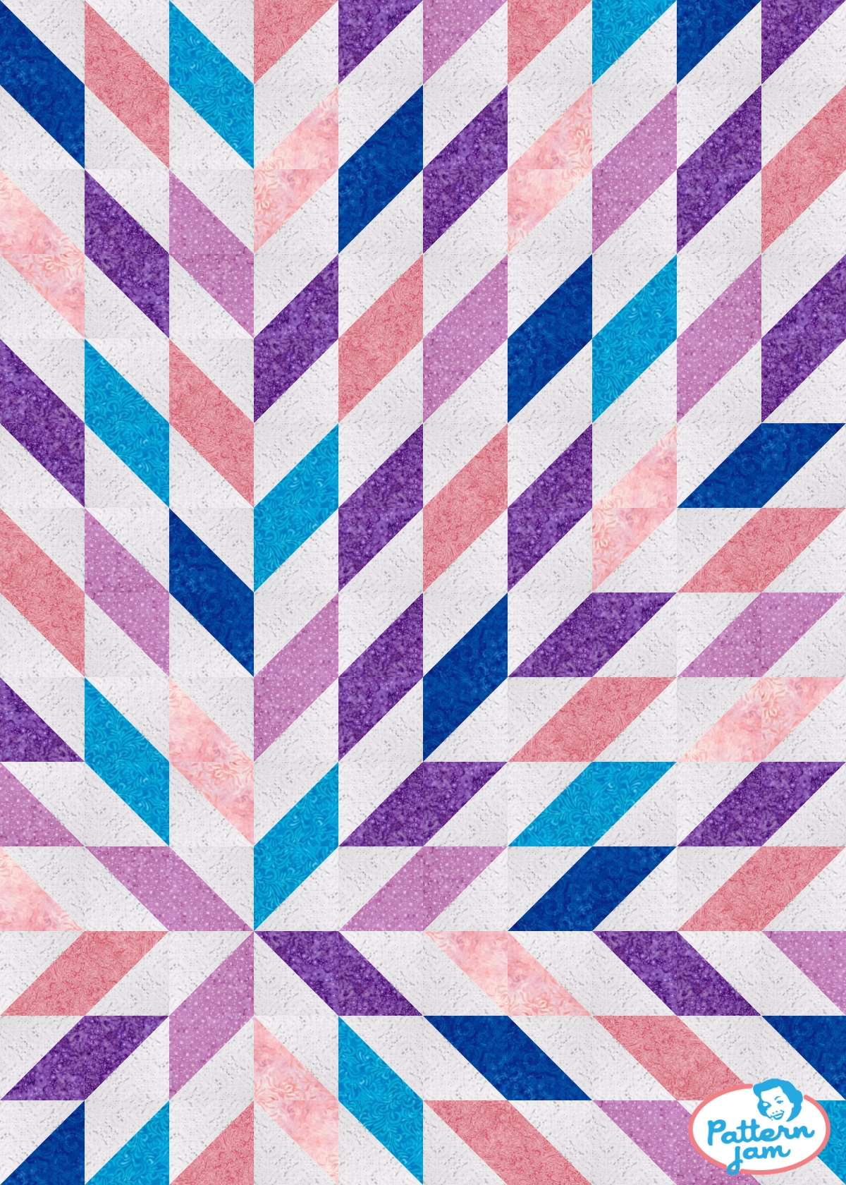 Blues, pinks, and purples - custom quilt designed by @amwaiteschool using PatternJam quilt design software