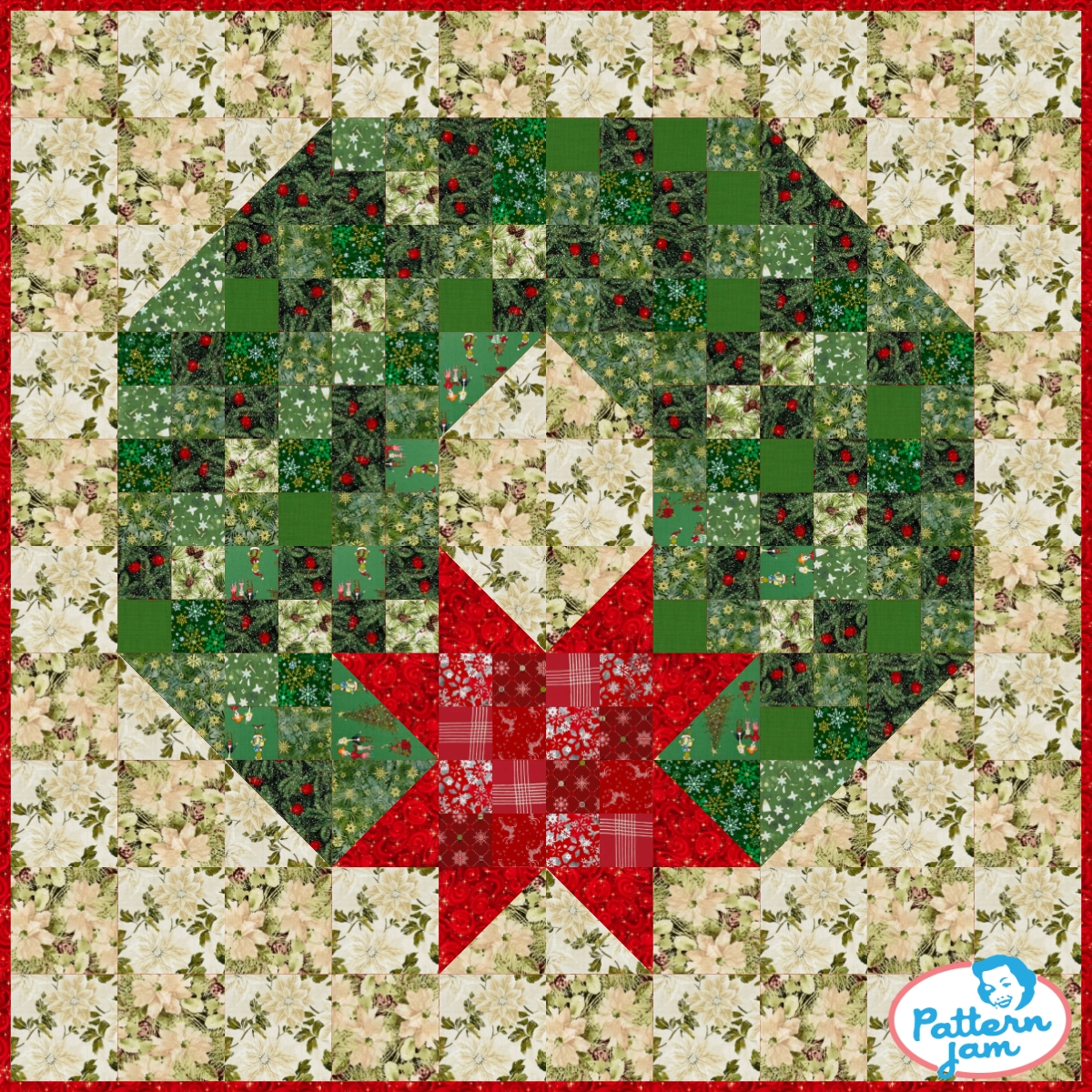 Poinsettia Christmas Wreath - custom quilt designed by @jbolt using PatternJam quilt design software