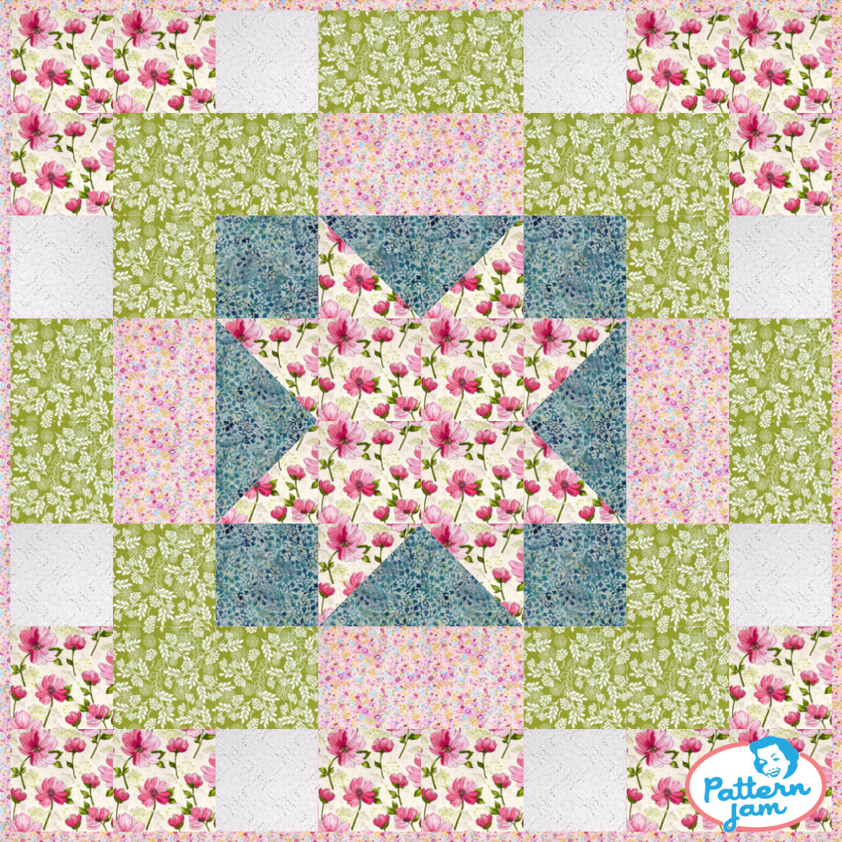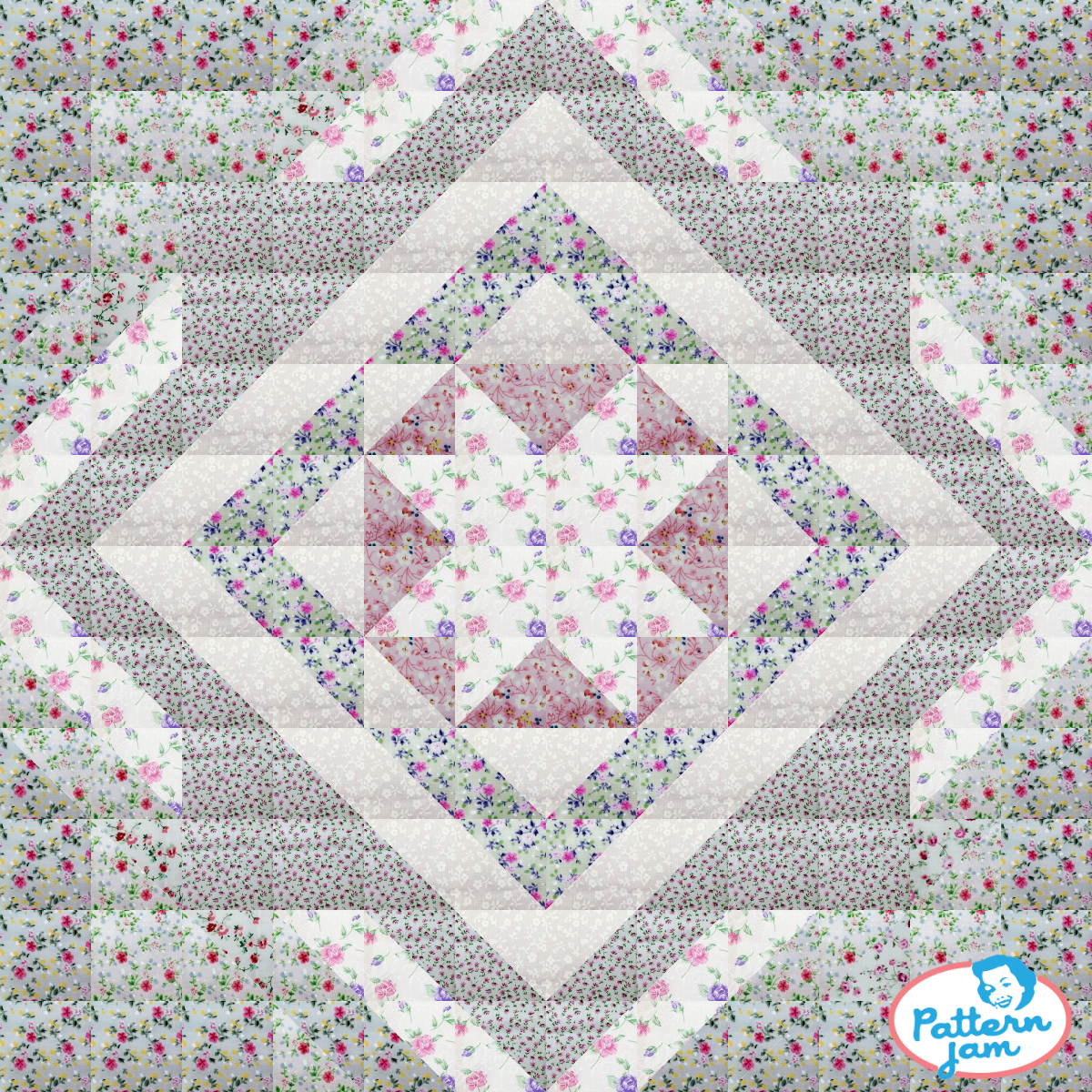 74"x74" double bed quilt - custom quilt designed by @broughton1910 using PatternJam quilt design software