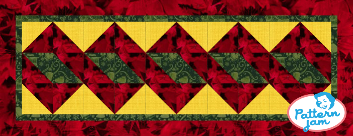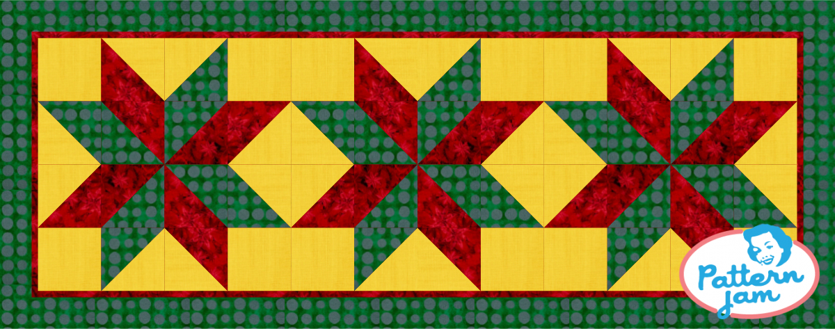Twisted pole Christmas table runner - custom quilt designed by @lydiaivanova using PatternJam quilt design software