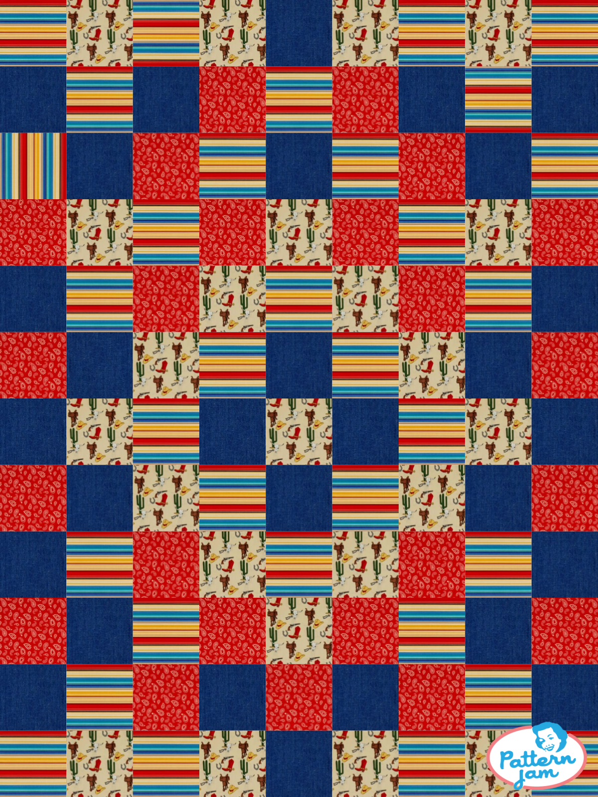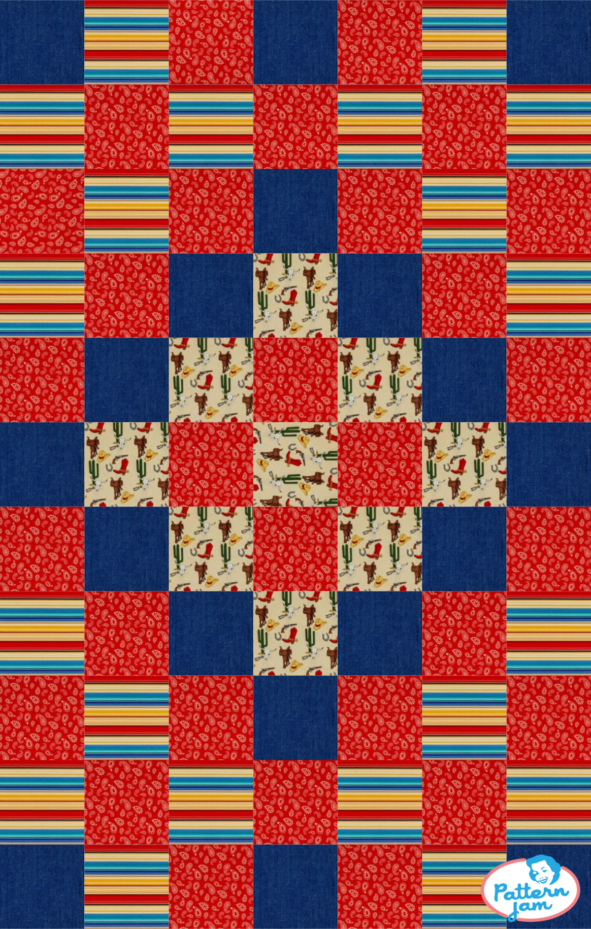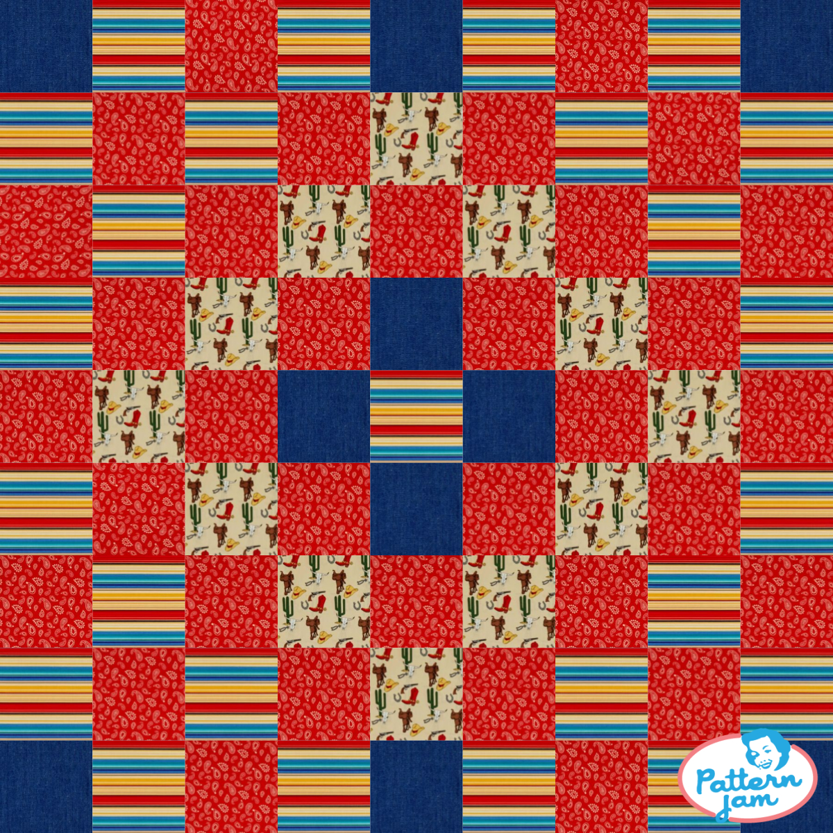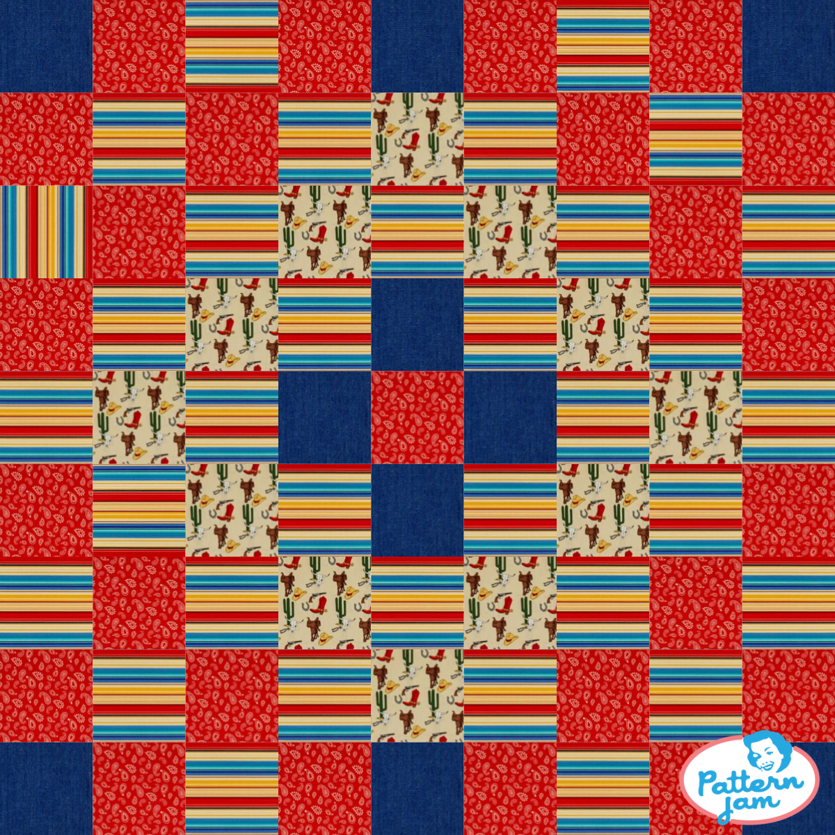 Red Cowboy Twin Quilt x 2 for Materials - custom quilt designed by @triciawood2018 using PatternJam quilt design software