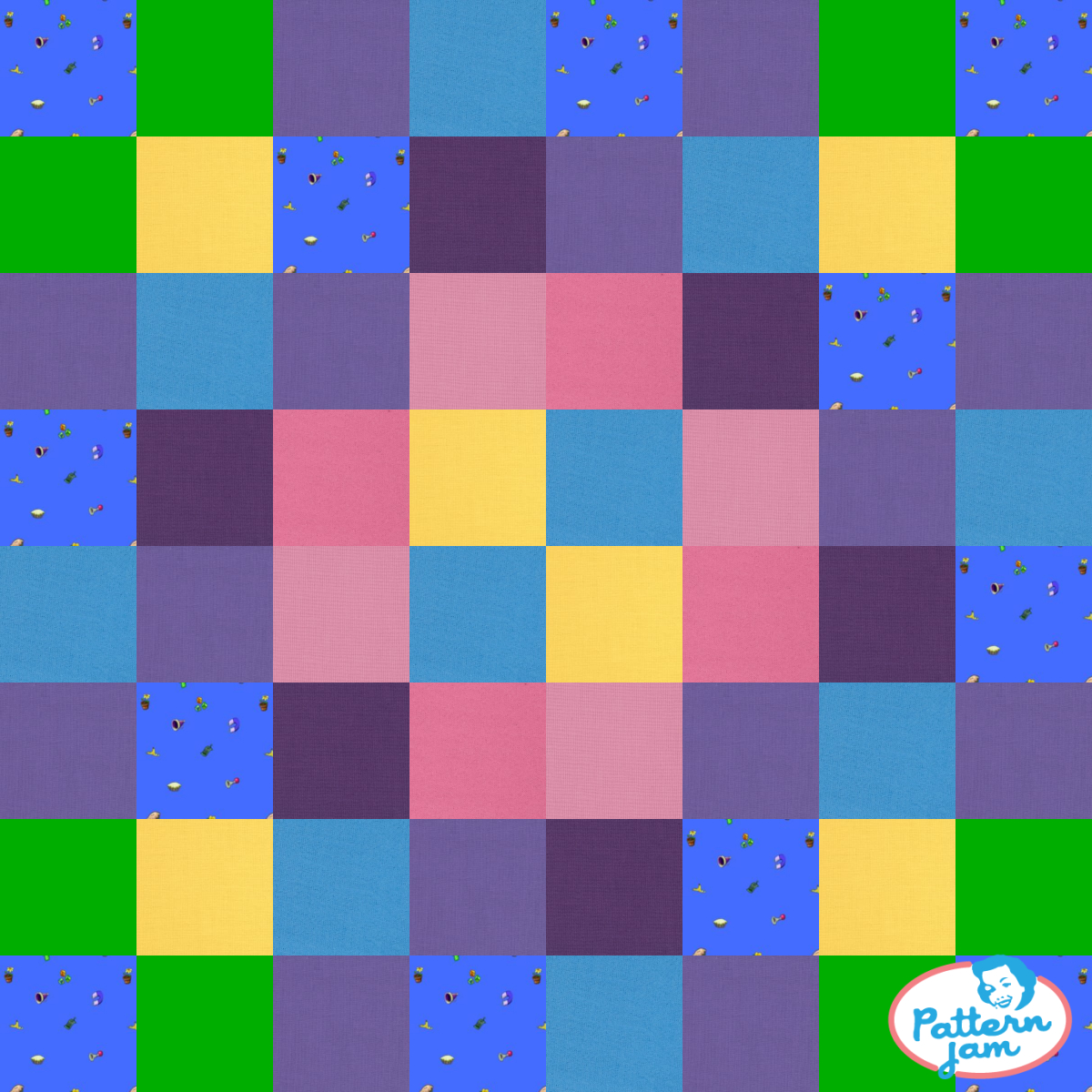 Toontown's Donald's Dreamland quilt (but with gag fabric from Spoonflower.)