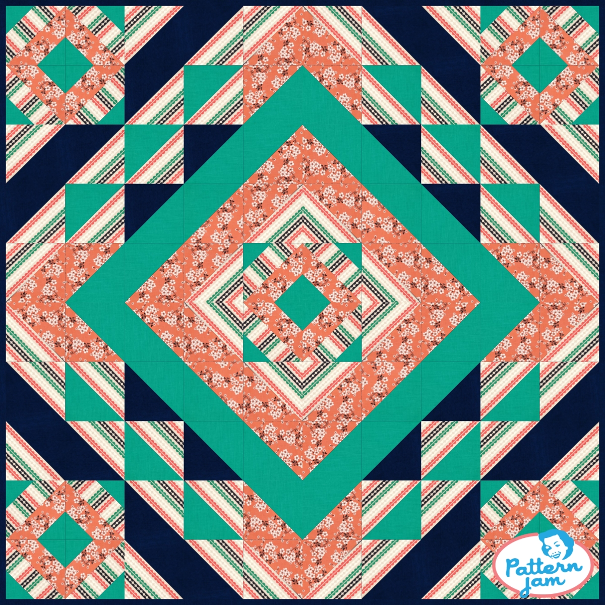 Primitive Color Wheel - custom quilt designed by @jbolt using PatternJam quilt design software