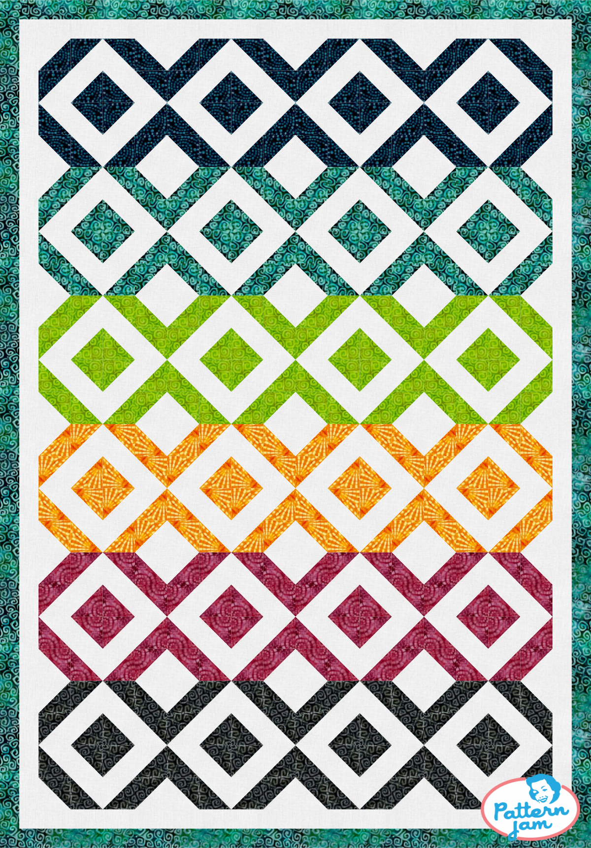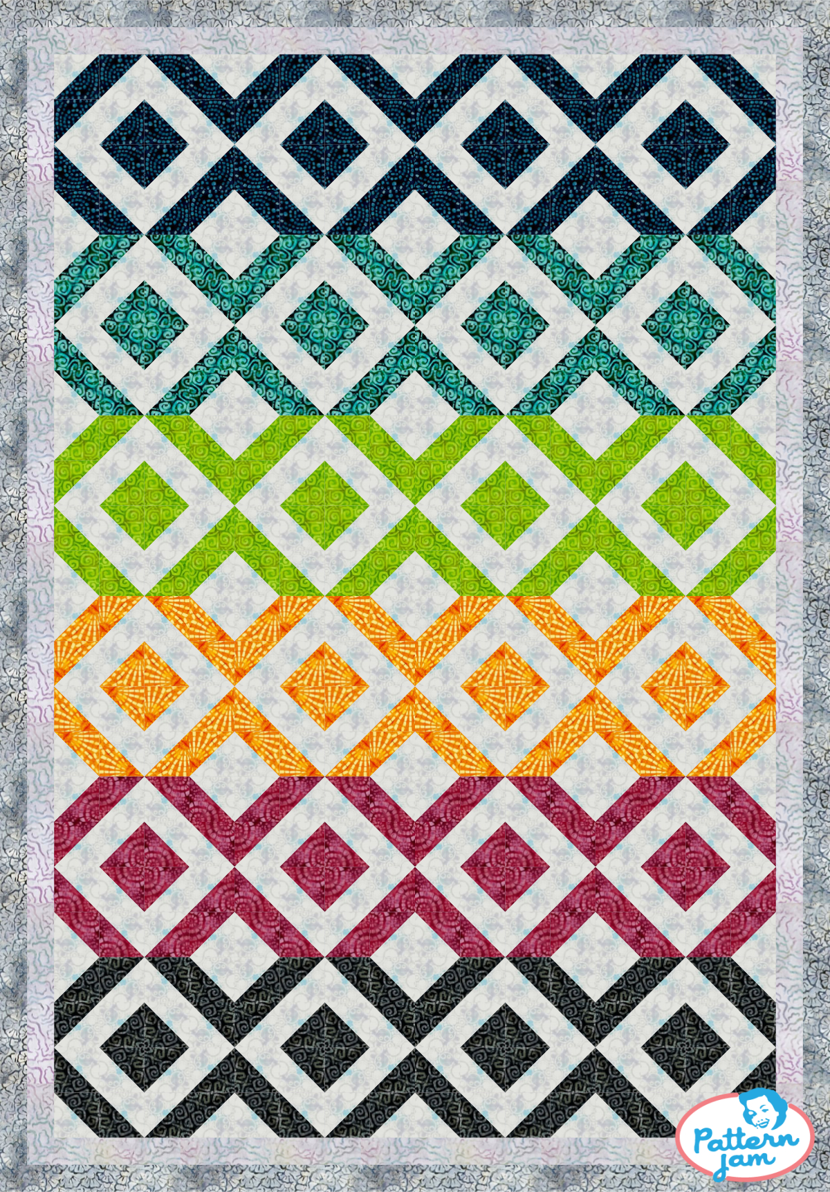 This is actually a jelly roll design, not a half square triangle. It used the now discontinued Hibicus Stonehenge line of fabric, but the pattern could be recreated with similar lines.