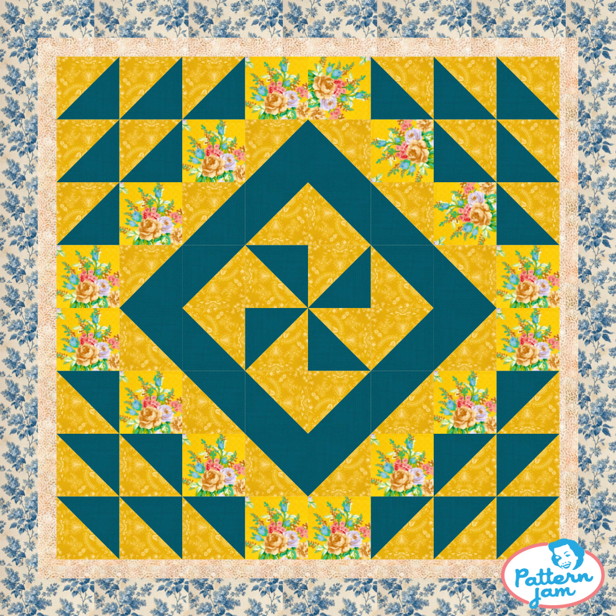 half square triangle windmill queen - custom quilt designed by @hmariemines using PatternJam quilt design software