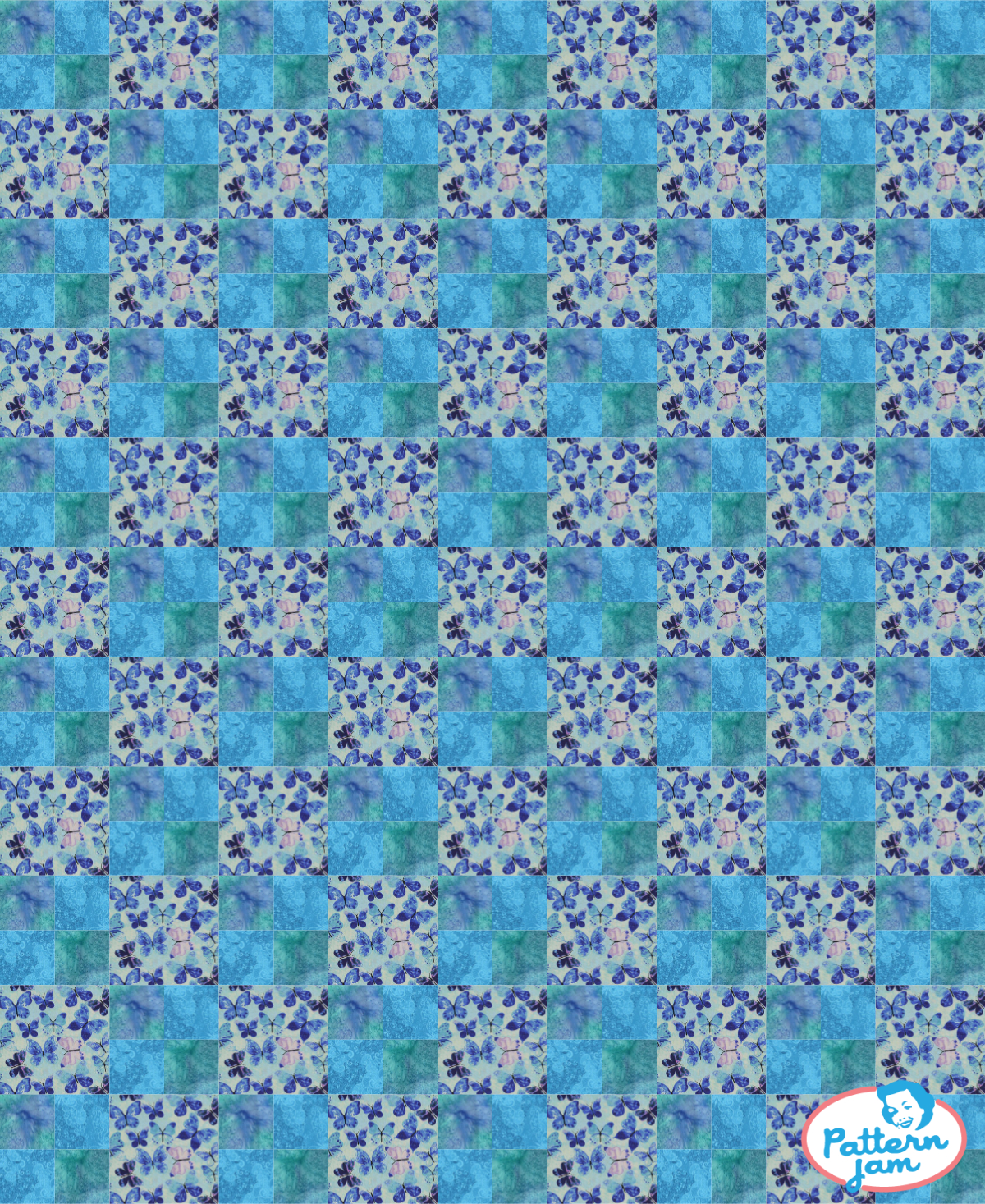 Butterfly themed quilt. Block A is 4 squares that will measure 5 inch squares upon final seam. Block B will measure 10 inches upon final seam. Total measurements for quilt will be 90 inches wide by 108 inches long.