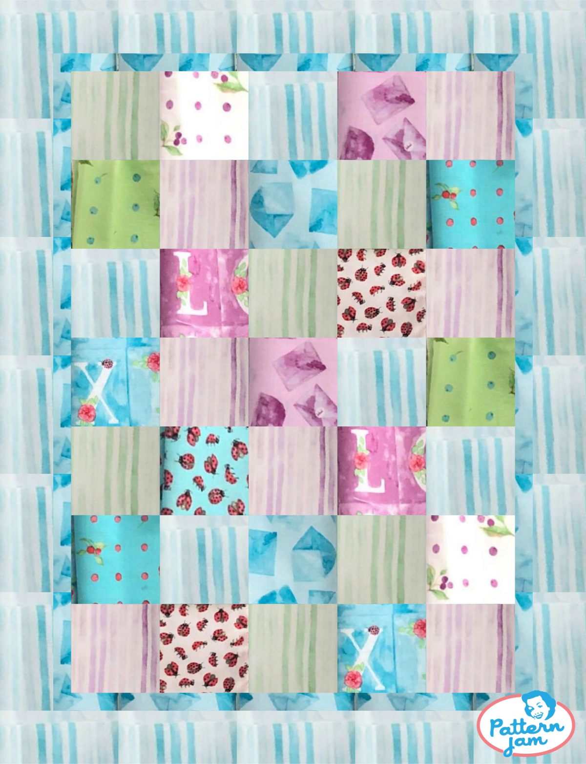 blue Pinwheels three dimensional. Pinwheels will be on the stripe background blocks. There will be another ladybug border